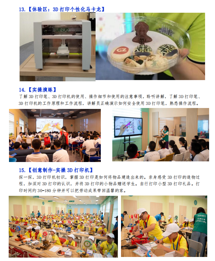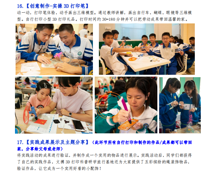 ★实践操作3D打印机和3D打印笔,学会操作的打印技巧并完成创意3D模型的打印、完成创意作品的绘制;(所有自行打印和制作的作品/成果都可以带回家,分享给父母或老师)
