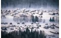 马拉爬犁看日出:乘坐古老的马拉爬犁,在铃铛声中穿越雪原,迎接第一缕阳光将整个禾木村染成金色的神圣时刻;